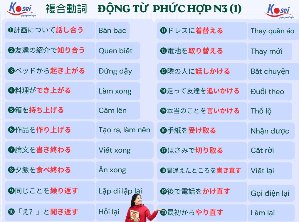 80 ĐỘNG TỪ PHỨC HỢP TRỌNG YẾU THƯỜNG XUYÊN XUẤT HIỆN TRONG ĐỀ THI JLPT