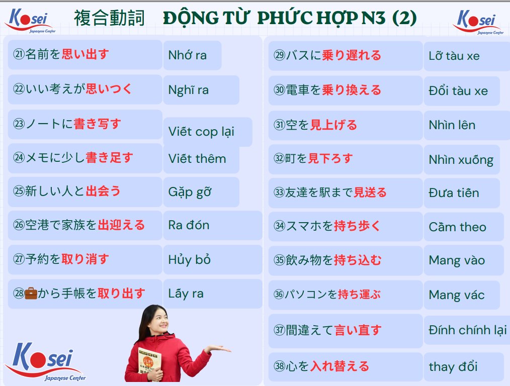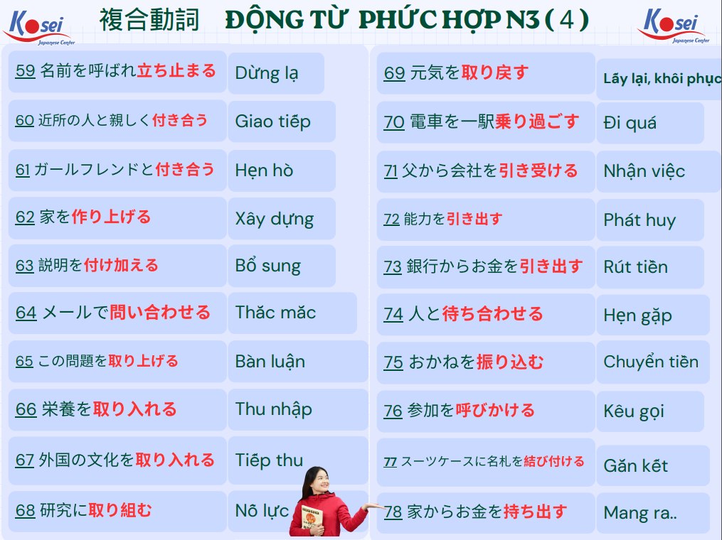 80 Động Từ Phức N3 quan trọng