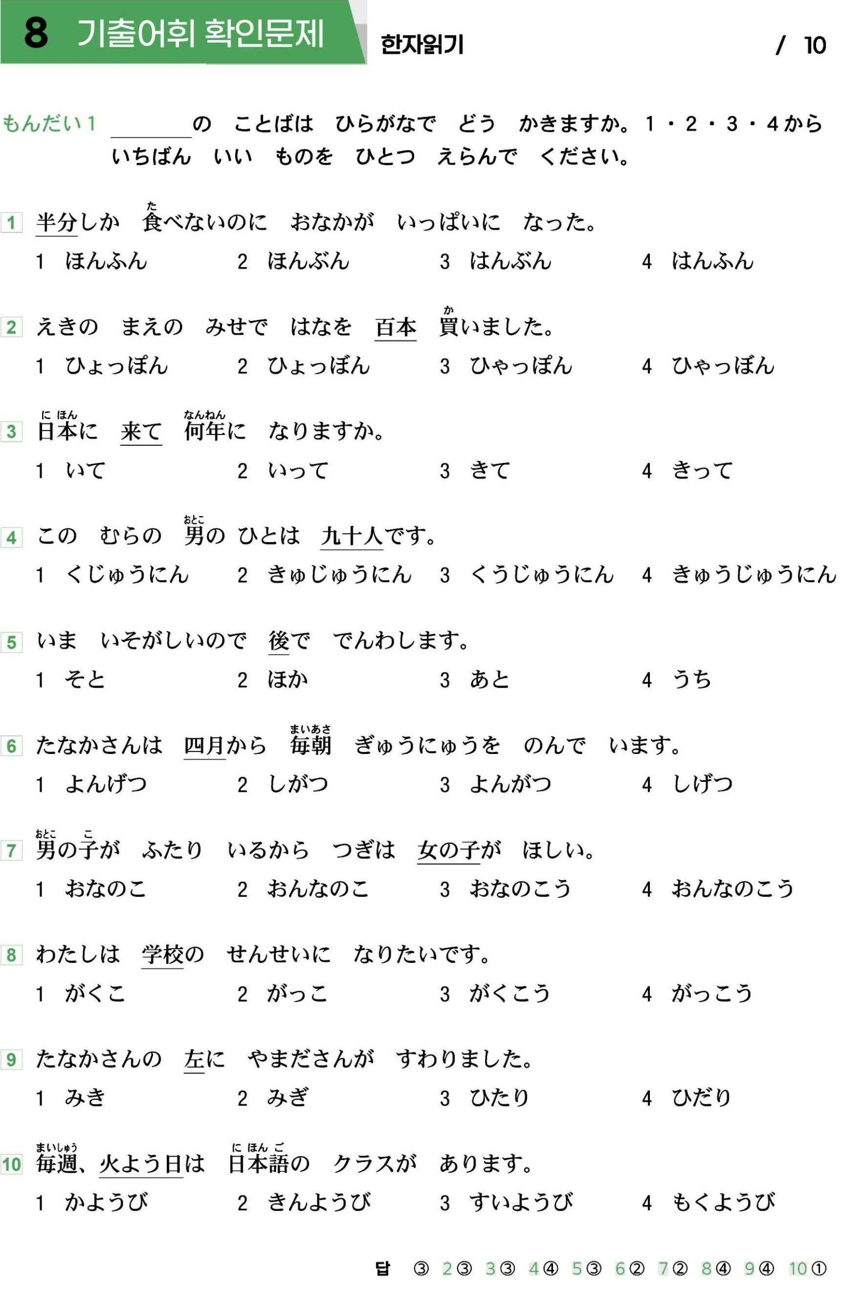 Bài tập Kanji JLPT N5: Phần 4 (Có đáp án)