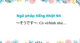~そうです~: Có vẻ/hình như… Cấu trúc: Động từ thể ます (bỏ ます) + そうです: Tính từ -i (bỏ い) + そうです。 Tính từ -na (bỏ な) + そうです。 Ý nghĩa: Có vẻ/hình như… Giải thích: 『そうです』Dùng trong trường hợp thể hiện sự nhận định, đánh giá của người nói dựa …